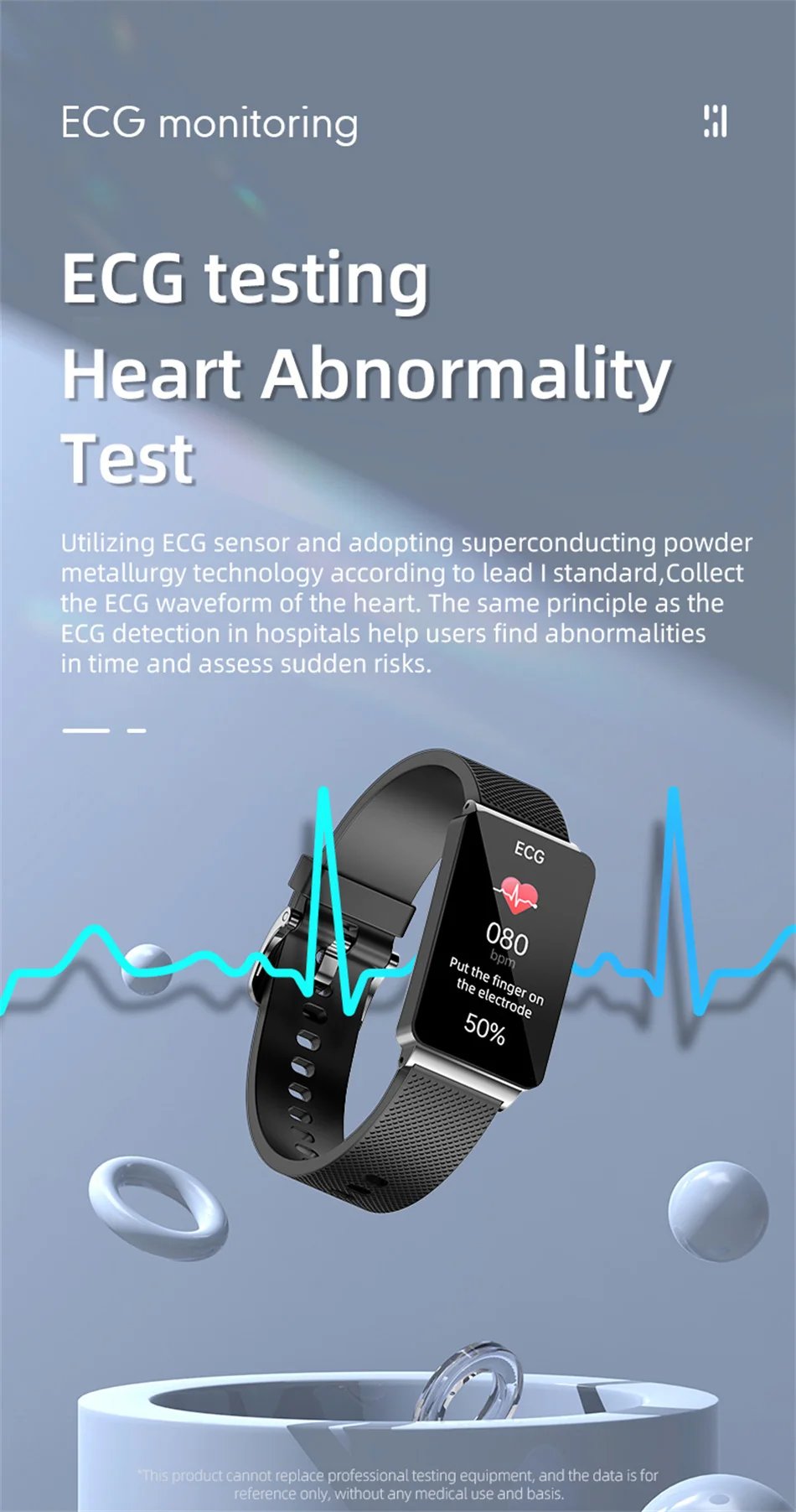 2. ECG + chip de cuidado, que mide la presión arterial, oxígeno en sangre, frecuencia cardíaca, temperatura corporal